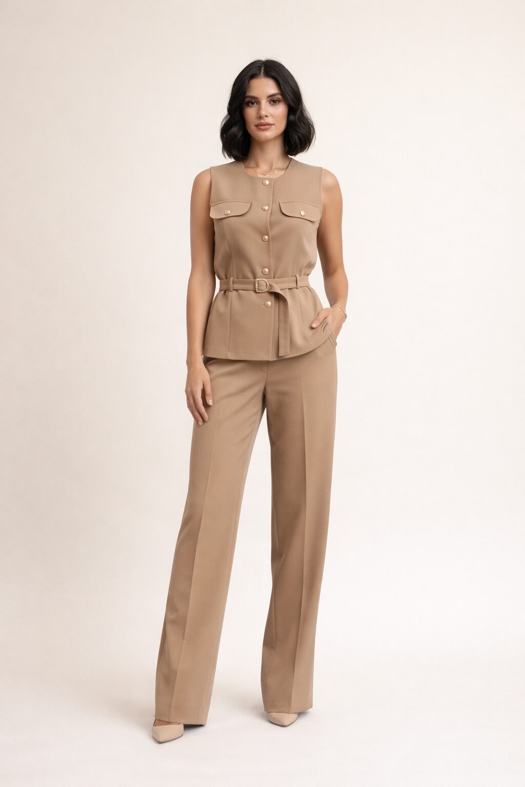 WHITE TENDY PANTS WITH BLACK GOLDEN BUTTONS ON THE BACK (TOP ONLY)