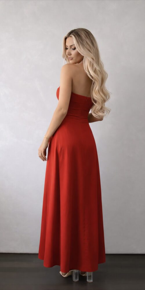 Make a bold entrance with this red sea star corset dress, featuring a sculpted bustier design that enhances feminine curves. The striking hue and buff detailing evoke confidence and allure, perfect for evening parties, special events, or festive occasions. A captivating fusion of glamorous style and modern elegance.