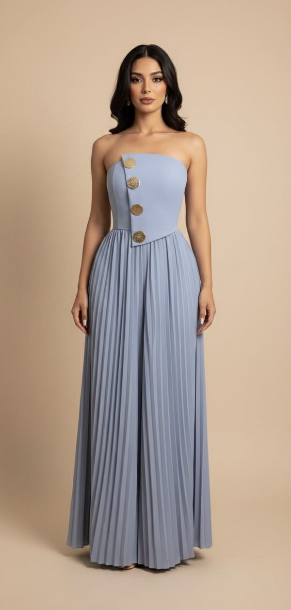 Elevate your wardrobe with these modern and elegant blue Kasrat pants featuring statement gold oversized buttons. Crafted for the confident woman, this tailored piece blends chic sophistication with contemporary flair. Perfect for upscale brunches, work-to-evening looks or refined casual outings, these design-forward pants are a standout in any curated collection.