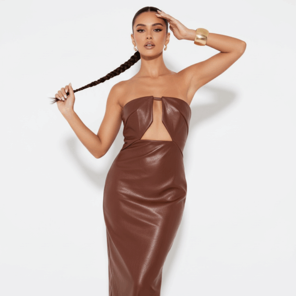 Be the first to review “BROWN HIGH NECK LACE LONG DRSS” Cancel reply